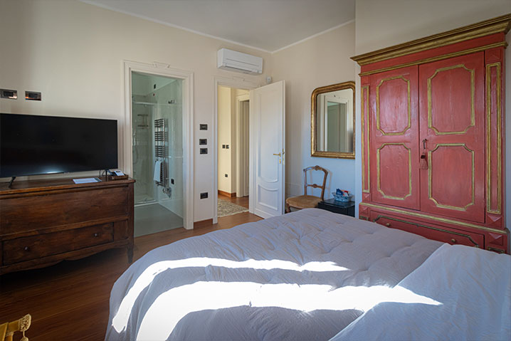 Dispone di una Smart-TV Led HD da 43”, climatizzatore e riscaldamento a pavimento, un ampio bagno in camera con rivestimenti e top in marmo pregiato e una cassaforte.