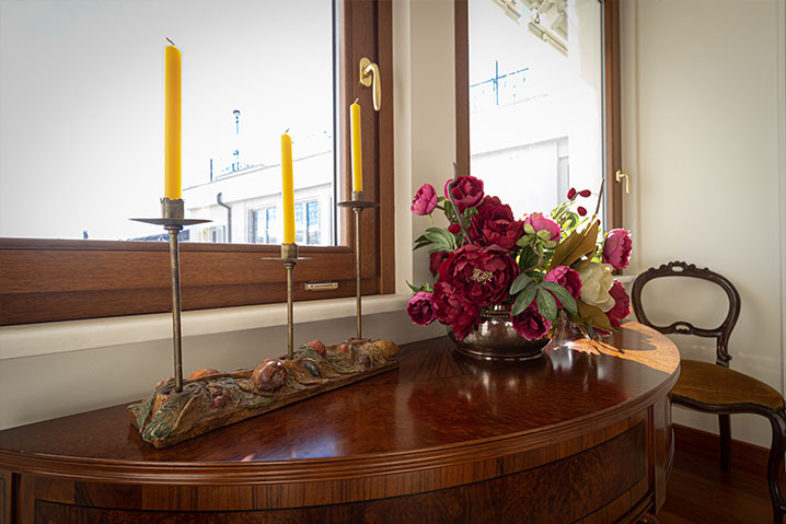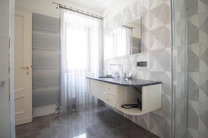 É posizionata frontalmente al terrazzino che affaccia sul giardino interno e sullo skyline del centro storico della città.