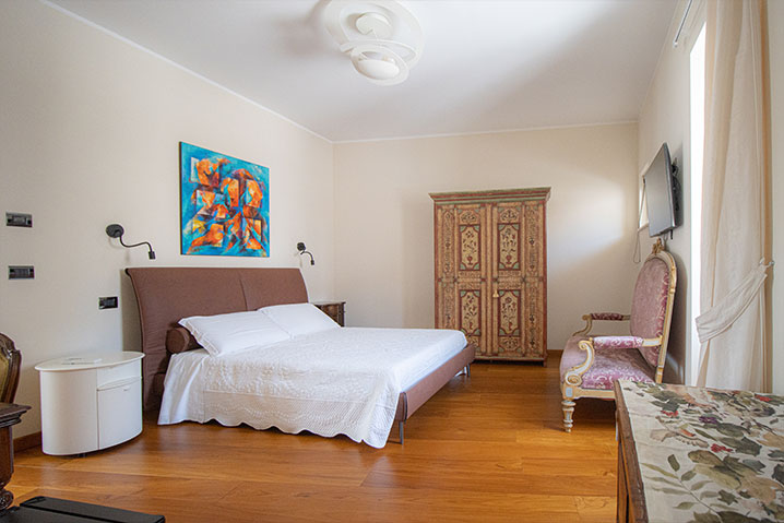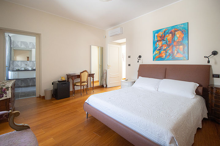 Nella camera sono presenti anche una smart-TV Led HD da 43”, con Netflix e Amazon Prime inclusi, climatizzatore caldo/freddo e riscaldamento a pavimento.